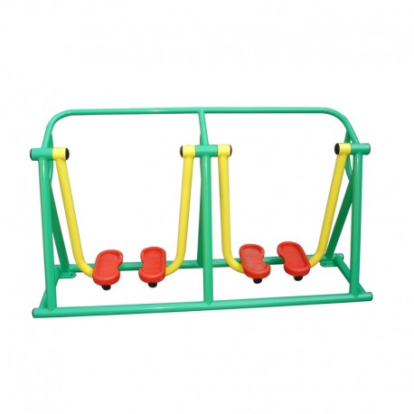 Máquina de trabajo aeróbico de intensidad leve que trabaja la flexo-extensión de cadera orientado a niños. Esta máquina es del grupo Aeróbico Cardiovascular y puede ser usada por dos personas de forma simultanea en trabajo de piernas, aumentando la flaxibilidad sin impacto para las articulaciones. Simula la acción de caminar, no tiene impacto en las articulaciones.